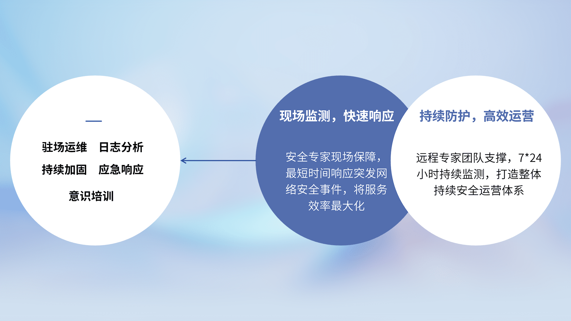 7X24小时持续监测安全事件,保持安全策略有效性,降低资产脆弱性风险,,,精准拦截黑客攻击,,,减少被黑客利用的机会,,第一时间遏制,,降低损失。。